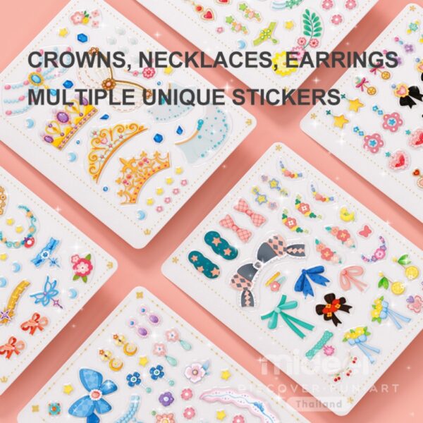 สามารถตัดกระดาษสติ๊กเกอร์ตามแม่แบบ แล้วนำมาติดที่ตัวเจ้าหญิงได้