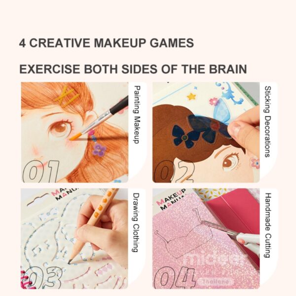 สามารถแต่งหน้าระบายสี ติดสติ๊กเกอร์ วาดเพื่อออกแบบเสื้อผ้าและตัดกระดาษมาติดตัวการ์ตูนได้