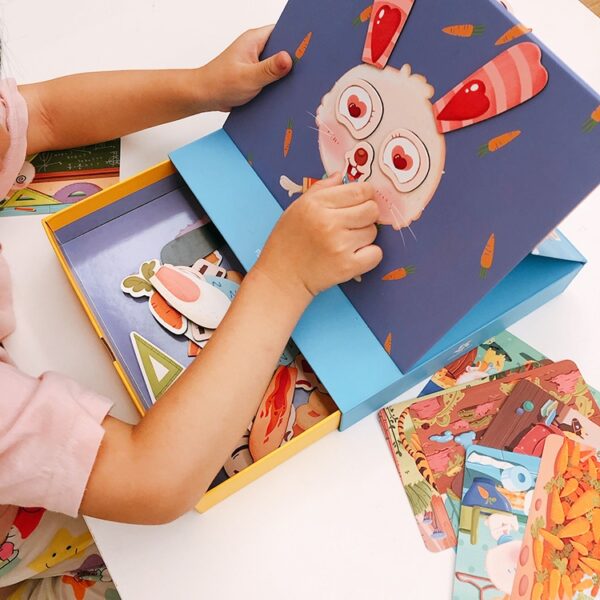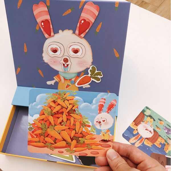 วิธีเล่น: คุณพ่อคุณแม่ หรือผู้ปกครองช่วยอ่านการ์ดโจทย์ ให้น้องๆ และติดแม่เหล็กแต่งหน้าให้ Dorothy ตามโจทย์ หรือจะเพิ่มจินตนาการด้วยการคิดโจทย์เพิ่ม และแต่งหน้าตามจินตนาการ