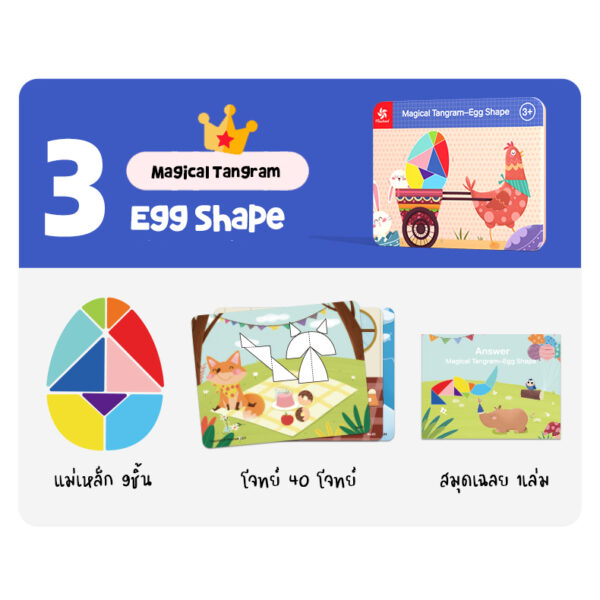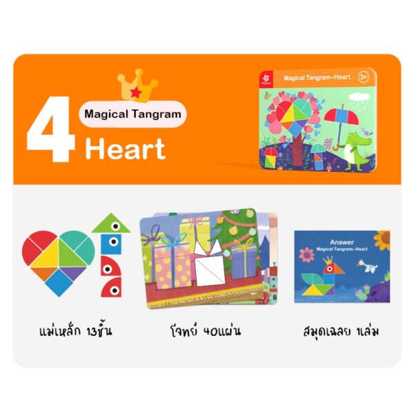 Tangram (แทนแกรม) ตัวต่อปริศนารูปเรขาคณิต สามารถนำชิ้นส่วนต่างๆมาประกอบกันเป็นรูปร่างต่างๆตามจินตนาการ เป็นหนึ่งในของเล่นเสริมพัฒนาการที่เด็กๆต้องมี