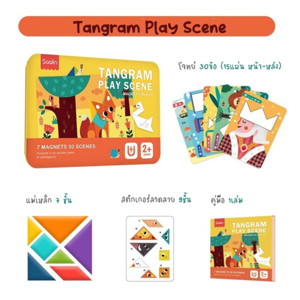 Saalin Magnetic Tangram Puzzles ตัวต่อรูปทรงเรขาคณิต แบบแม่เหล็ก | ของเล่นเสริมพัฒนาการ ของเล่นเด็ก
